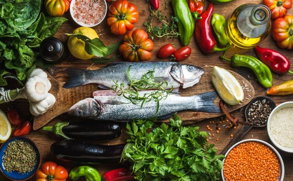 - דגים – בשרם של הדגים מזין ועיכולו קל ולכן יש העדפה ברורה לדגים על פני מקורות אחרים מהחי. דגי ים מכילים כמות מסוימת של חומצות שומן חיוניות כגון אומגה-3 אך גם דלים בכולסטרול לעומת דגים של מים מתוקים. אצות ים מספקות אף הן מגוון של מינרלים ועיכולן קל. ההמלצה היא לצרוך 4-5 מנות דג בשבוע.