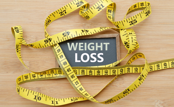 סרט מדידה ושלט שכתוב עליו WEIGHT LOSS