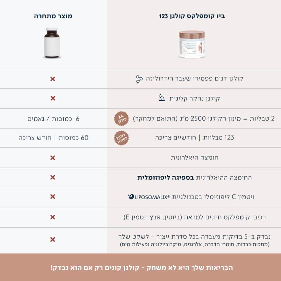 ביו קומפלקס קולגן 123 | טבלת השוואה
