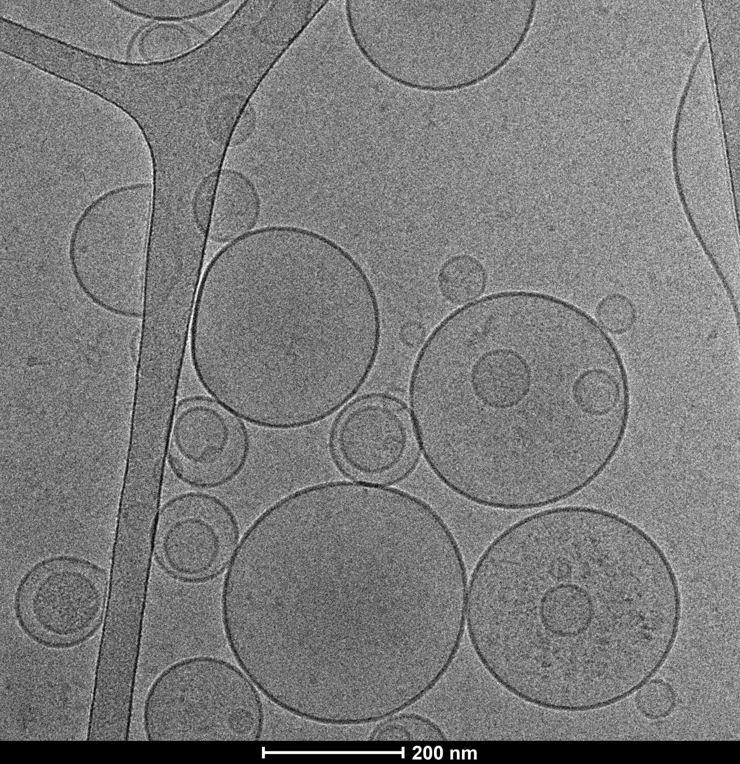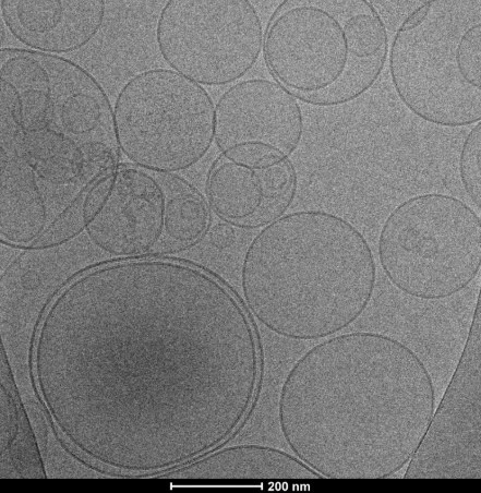 איכות המגנזיום הליפוזומלי שלנו נבדק באמצעות מיקרוסקופ אלקטרונים (Cryo-TEM) – ניתן להבחין בצפיפות גבוהה של ליפוזומים בפיזור אחיד – נראים מבנים חד-שכבתיים ורב-שכבתיים (MLV) ללא אגרגציה.
