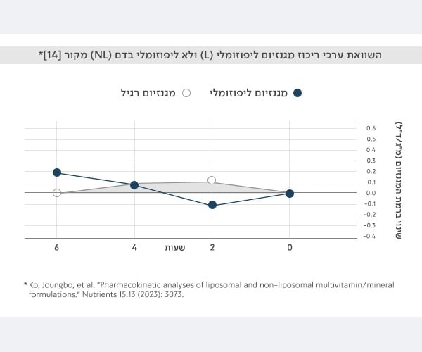 - שחרור מבוקר: טכנולוגיית ליפוזמלית מאפשרת עלייה מתמשכת ברמות המגנזיום לאורך 6 שעות, עם פחות תופעות לוואי [18].